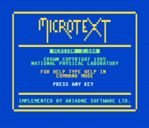 The MICROTEXT system described in this document was designed by the National Physical Laboratory, and is Crown Copyright (c)1983. The CBM version was implemented by Ariadne Software Ltd.